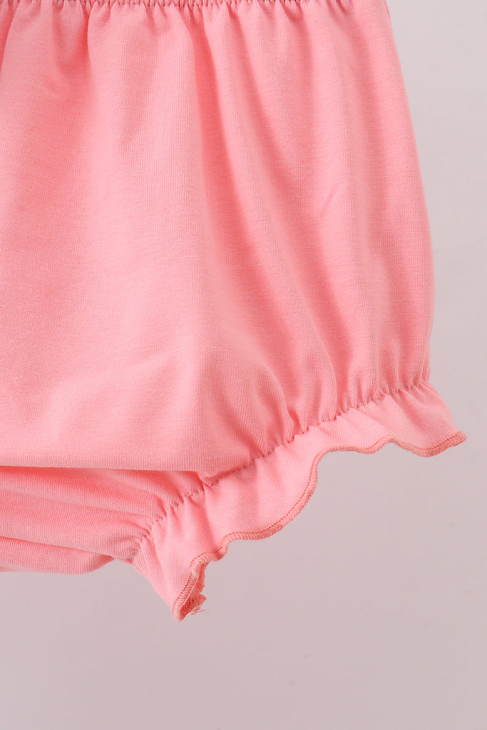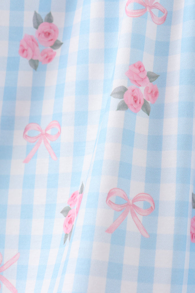 Adorable two-piece set featuring a smocked top with charming "I love DADDY" text paired with ruffled bloomers. The playful floral gingham pattern in soft blue tones makes this perfect for daddy-daughter moments or special occasions. Delicate smocking detail adds texture and comfort, while the ruffle bloomers bring extra sweetness to this heartwarming outfit. Ideal for little ones who want to show their love in style.