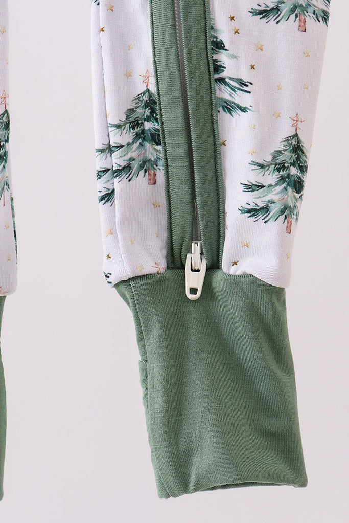 Green christmas tree bamboo zipper romper