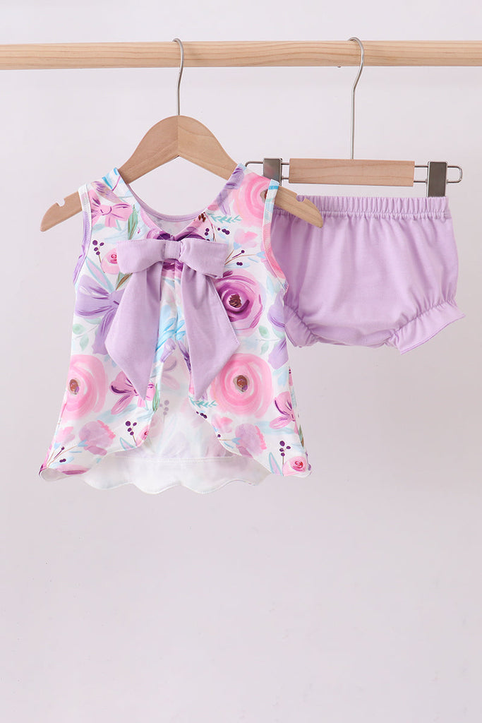 Purple floral print bloomer set