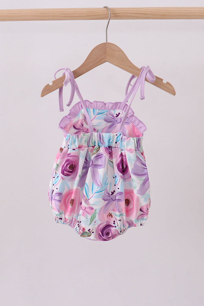 Twirl into springtime style with this charming purple floral print bubble! Delicate ruffles frame the neckline while the playful bubble silhouette creates a fun, flattering fit. The vibrant floral pattern brings cheerful color to any wardrobe, perfect for adding a whimsical touch to your everyday look. Soft, comfortable fabric makes it ideal for all-day wear, whether you're heading to brunch or a casual outing. A delightful piece that celebrates bold prints and playful fashion!