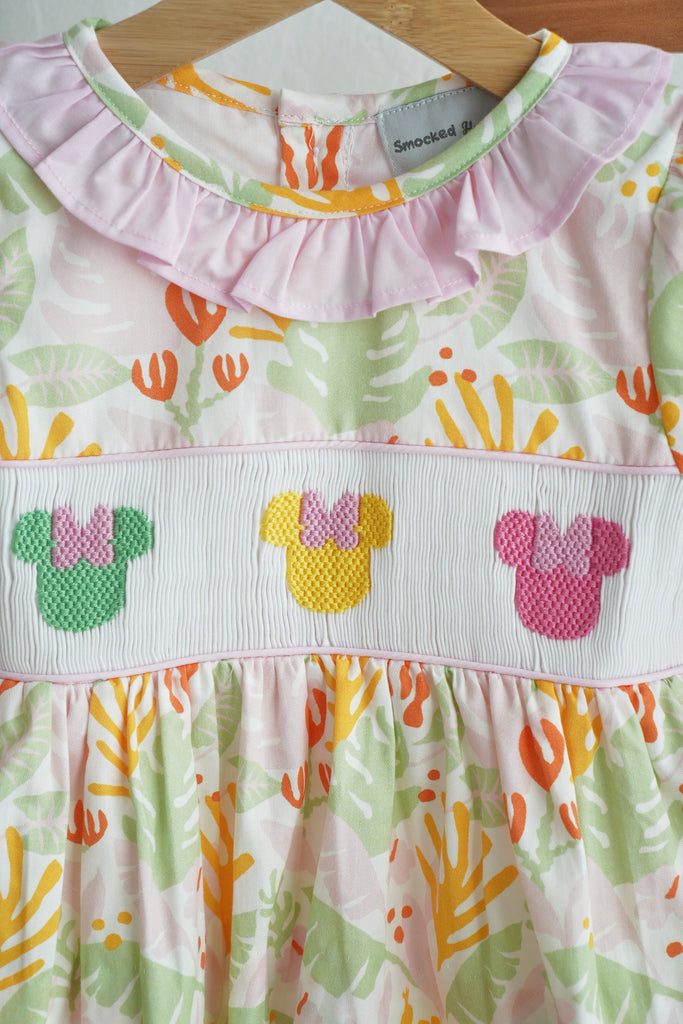 Adorable hand-smocked bloomer set featuring charming island character details perfect for little ones. Each piece is carefully crafted with delicate smocking that adds texture and whimsy to the design. The soft, breathable fabric keeps your child comfortable all day long, whether they're playing at home or heading out for an adventure. Mix-and-match pieces let you create multiple outfits from one set. A delightful choice for parents who love quality craftsmanship and playful style.