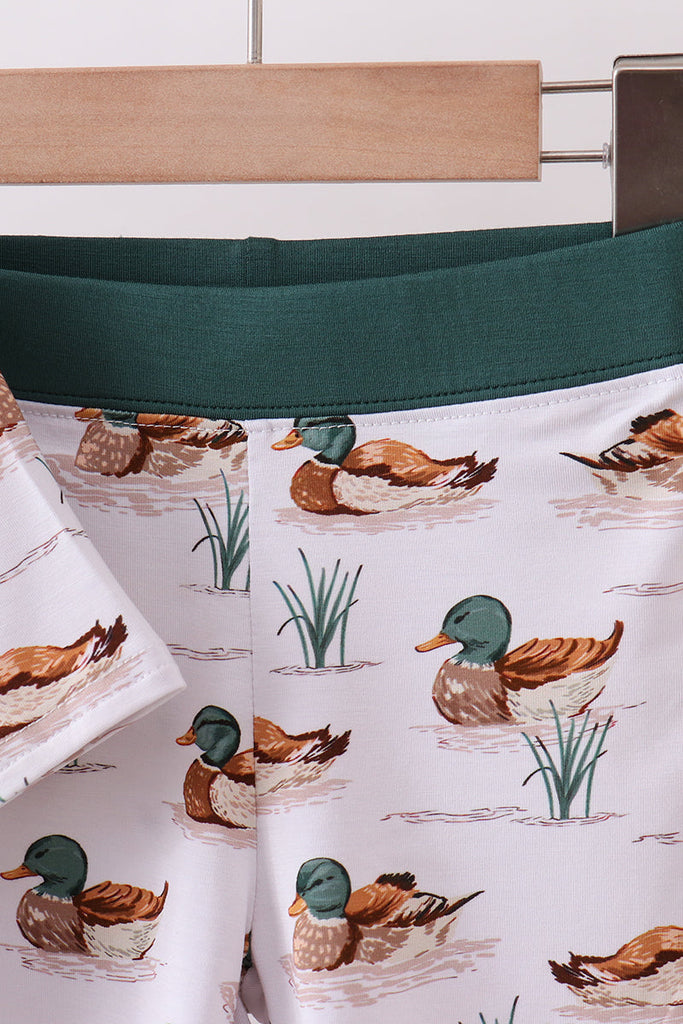 Green duck print bamboo shorts set