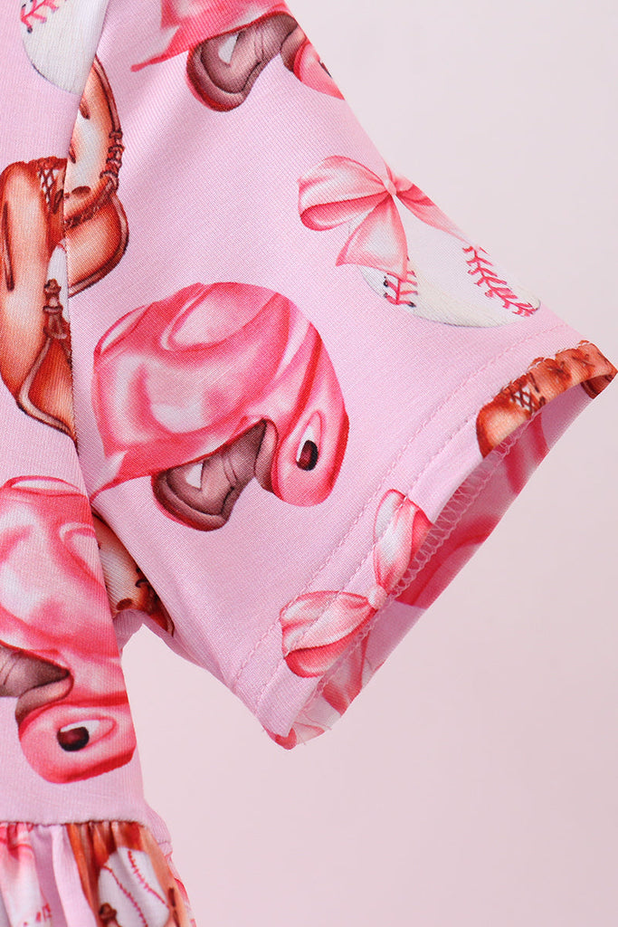 Pink bow baseball bamboo dress