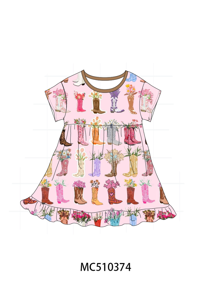 Pink floral boots bamboo dress