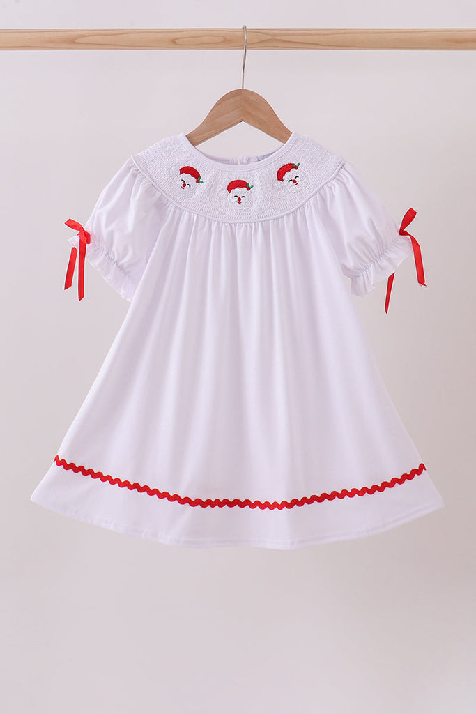 Bring holiday cheer in this playful White Santa Claus Smocked Dress. With charming smocked details and crisp white fabric, it adds a festive twist to classic Christmas style. Perfect for playful holiday gatherings or photos, this dress combines comfort and seasonal fun in one delightful look.
