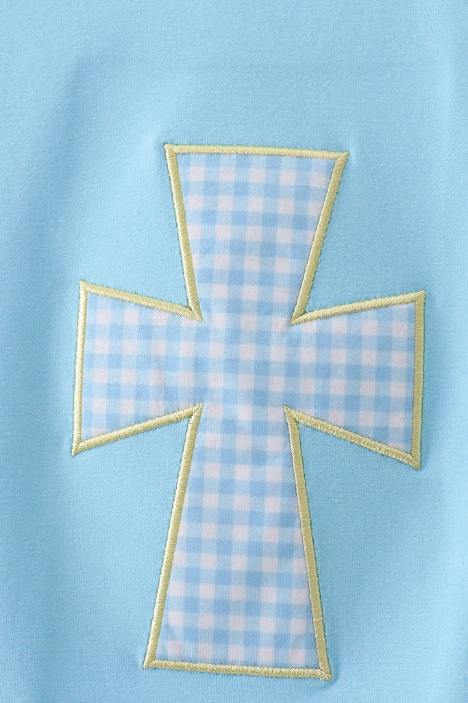 Blue cross applique top