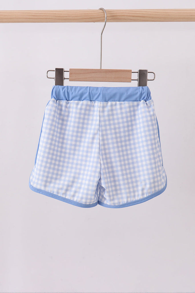 Dive into summer style with these vibrant blue gingham swim trunks! Featuring a classic checkered pattern that's equal parts retro and refreshing, these trunks deliver comfort and charm for beach days, pool parties, or backyard barbecues. The lightweight fabric dries quickly, while the relaxed fit keeps you moving freely through water and sand. Perfect for anyone who wants to make a splash with personality and flair.