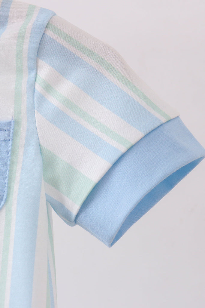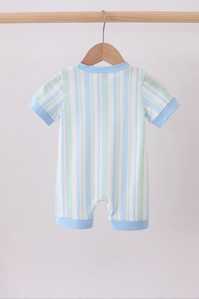 Stripes never go out of style—especially when they're this charming! This breezy romper features a classic blue stripe print that's perfect for effortless summer days. Practical front pockets keep your essentials close, while the relaxed fit ensures all-day comfort. Whether you're heading to brunch, running errands, or catching up with friends, this playful piece transitions seamlessly from casual to cute. A wardrobe essential that proves stripes are always a good idea.