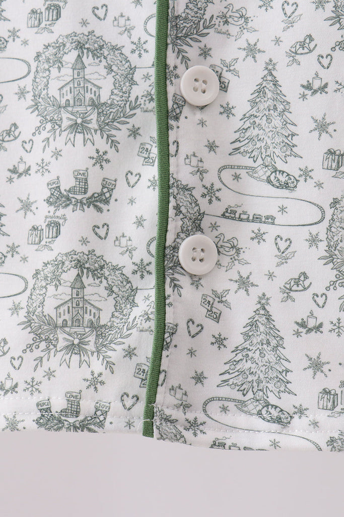 Celebrate the festive season in cozy style with this playful green Christmas tree print pajama set. Perfect for holiday mornings or winter nights, it features cheerful tree patterns that bring a touch of merry magic to your loungewear. Soft and comfy, it’s your go-to for joyful relaxation and festive fun.