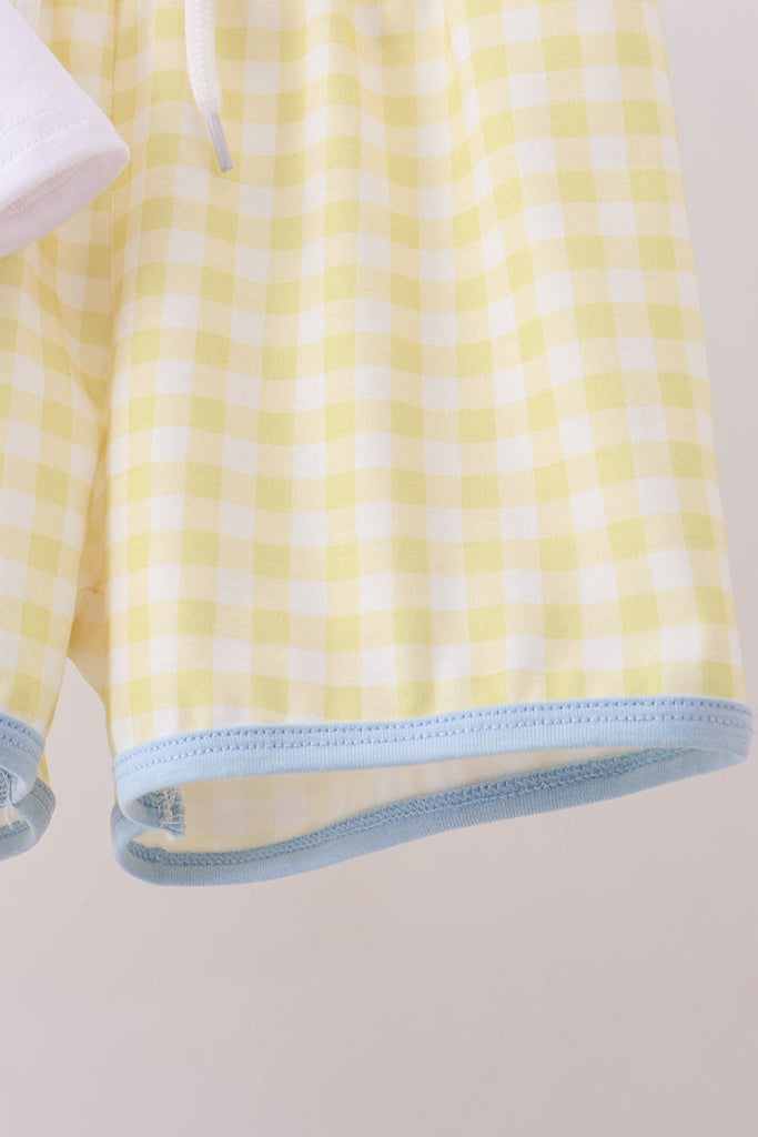 White zoo embroidery gingham shorts set