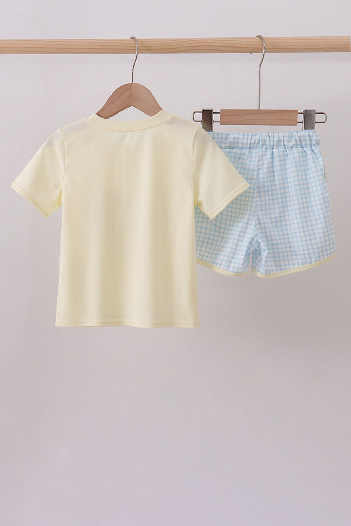 Yellow character applique shorts set