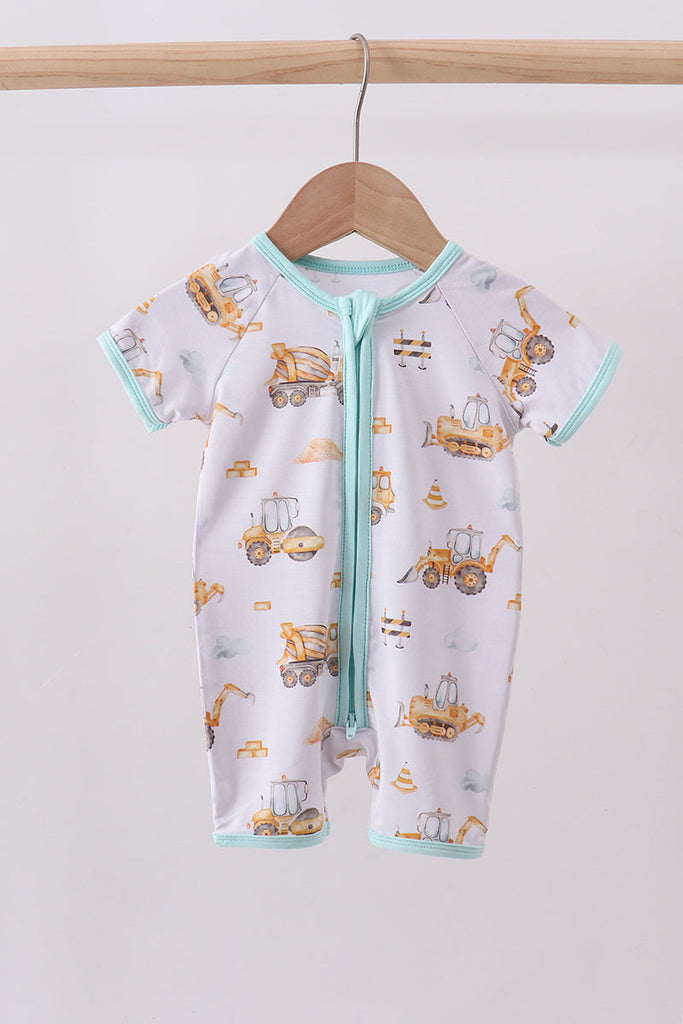 Yellow engineering vehicle bamboo romper