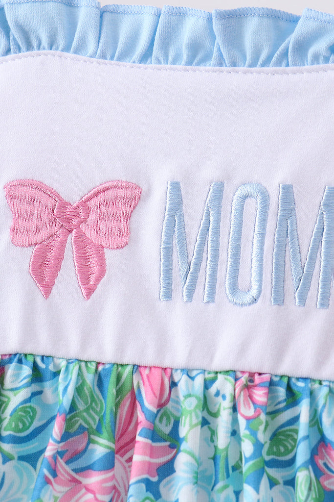 Blue I love MOMMY embroidery ruffle dress