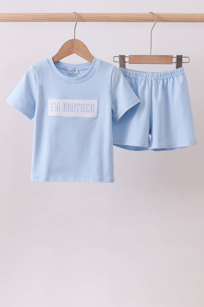 Blue big brother embroidery shorts set
