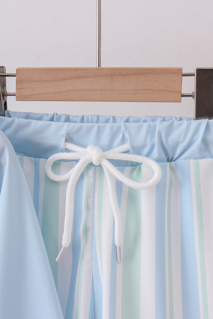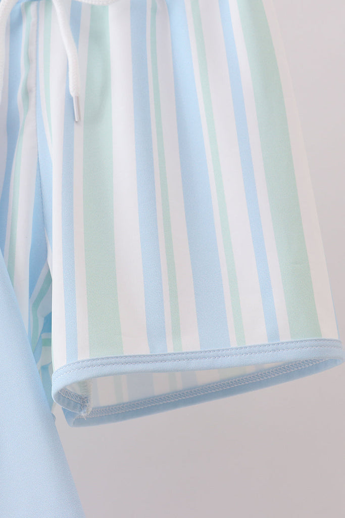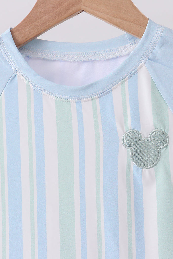 Blue character embroidery stripe long sleeve swimsuit