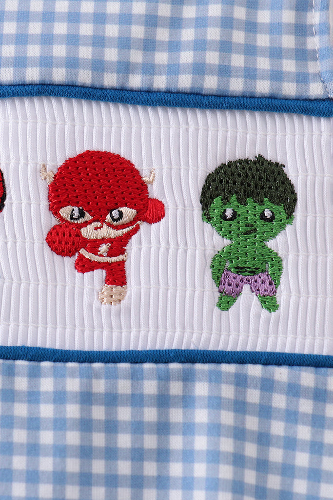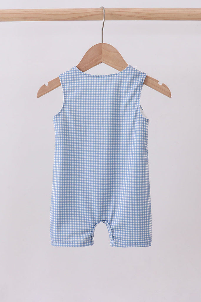 Meet the perfect blend of charm and comfort! This blue gingham jon jon showcases delightful character smocking that transforms a classic silhouette into something truly special. The playful design features intricate smocked details paired with cheerful gingham checks, creating a look that's both timeless and fun. Ideal for playdates, family gatherings, or just because—your little one will feel like a star in this delightful one-piece romper.