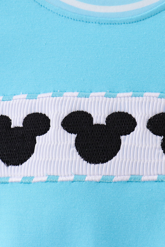 Blue character smocked romper