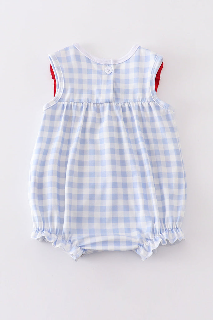 Blue plaid baseball embroidery girl bubble
