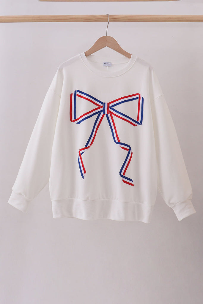 Cream Patriotic hand-sewn bow mom&me sweatshirt