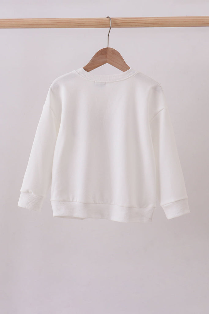 Celebrate your bond in matching style with this charming cream sweatshirt, perfect for mom-and-me moments. Each piece features a hand-sewn patriotic bow detail that adds a touch of whimsy and personality. Crafted with comfort in mind, this cozy sweatshirt is ideal for casual outings, family photos, or just snuggling up together. The soft, neutral cream tone pairs effortlessly with any outfit, while the patriotic accent brings a fun, festive flair. Create coordinating looks that show off your special connection!