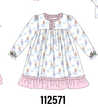 Bring a touch of whimsy to any occasion with this Pink Bow Nutcracker Ruffle Dress. Featuring charming ruffles and a playful bow detail, it’s perfect for little ones ready to twirl and dance. Soft, comfortable fabric ensures all-day fun while adding a splash of festive style to their wardrobe.
