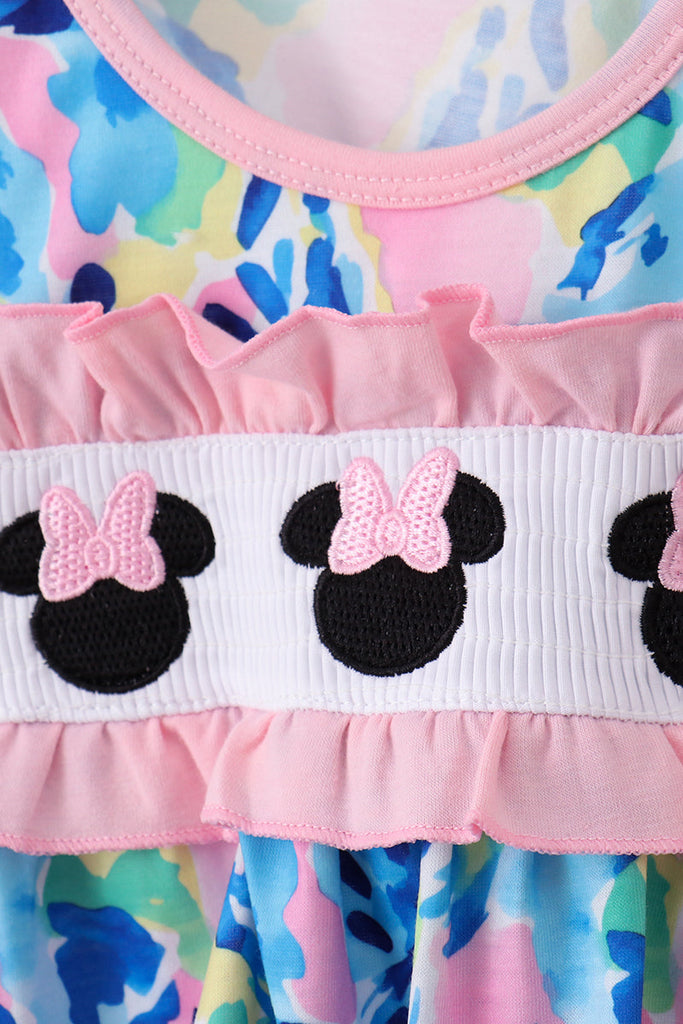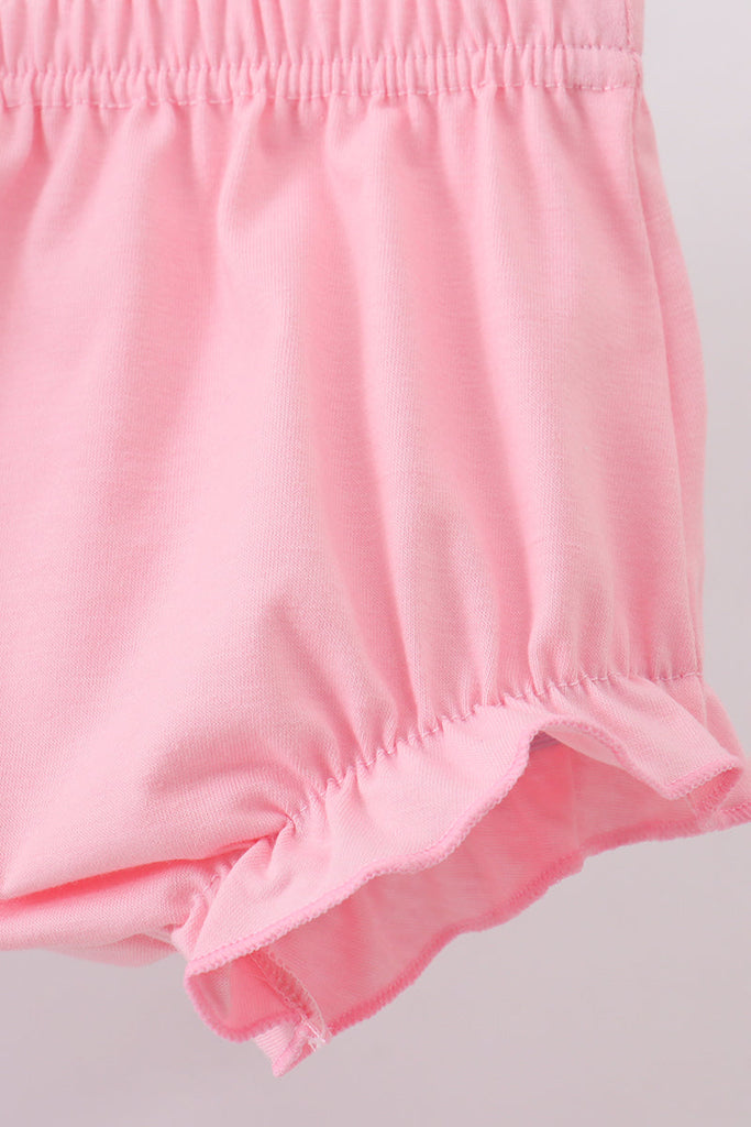 Pink character smocked ruffle bloomer set