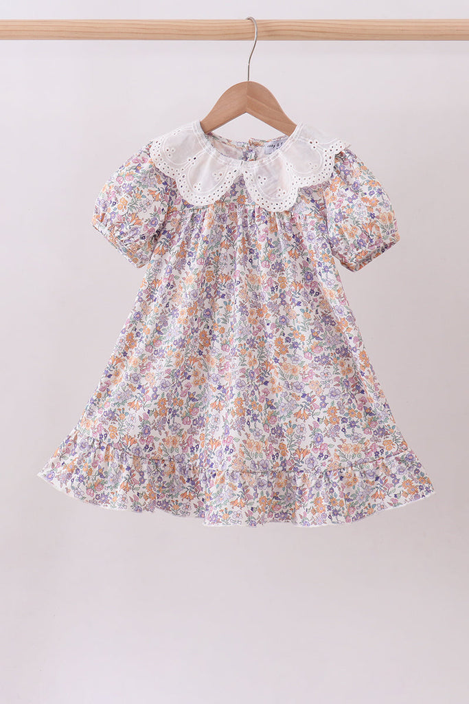 Purple floral lace ruffle dress