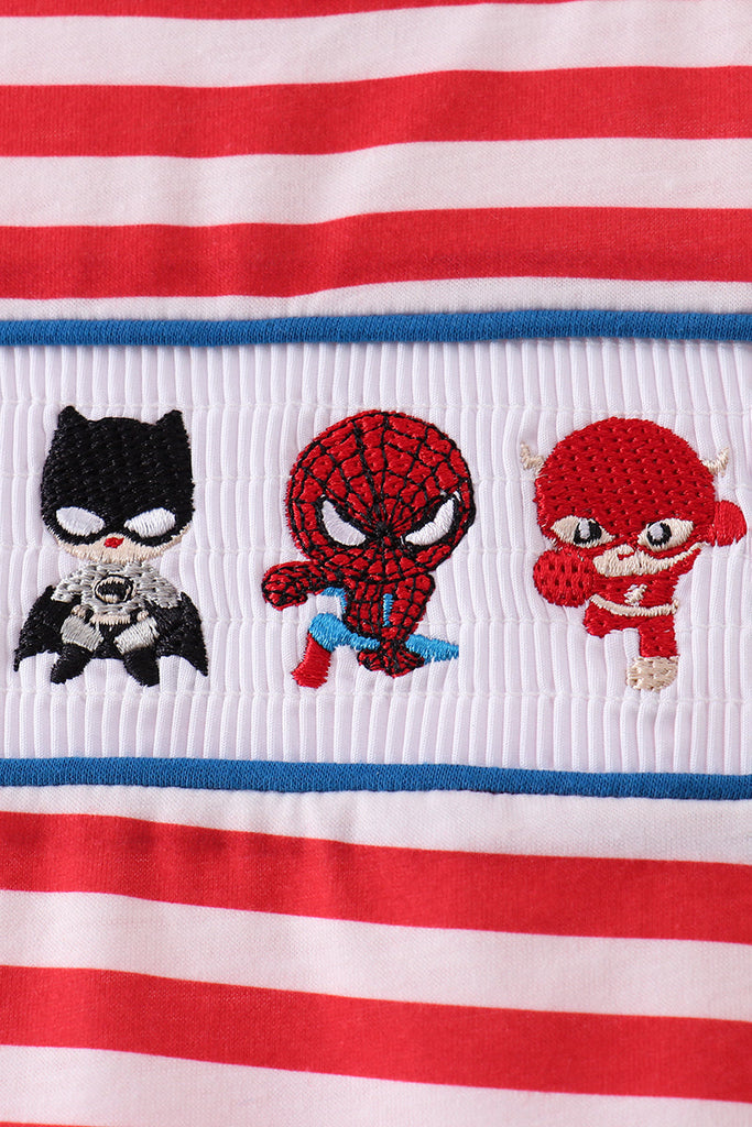 Red stripe character smocked top