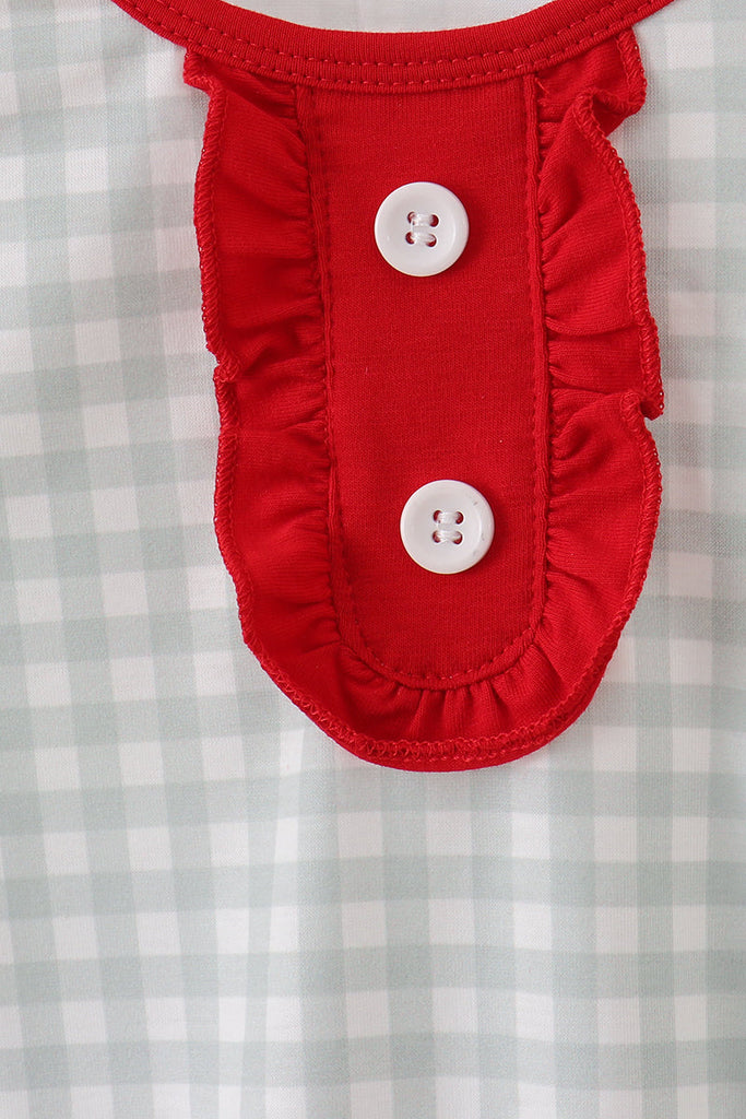 Slip into cozy charm with the Sage gingham ruffle pajama set. Featuring a delightful gingham pattern and playful ruffle details, this set brings a touch of whimsy to your bedtime routine. Soft and breathable fabric ensures comfort all night long, making it perfect for lounging or dreaming sweetly. Embrace relaxation with style and a smile in this adorable pajama set.