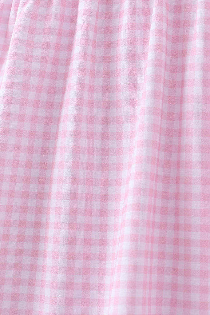 Pink cross embroidery gingham ruffle dress