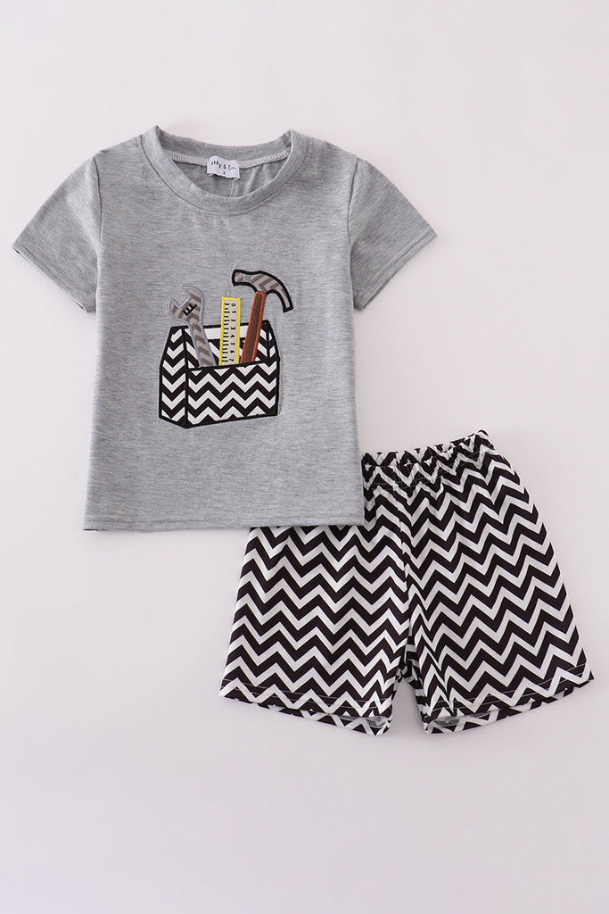 Get ready to fix up some serious style with our gray tool box applique shorts set. With its unique tool box design, you'll be the talk of the town. Plus, the soft material ensures maximum comfort for all your adventures. (No assembly required!!)