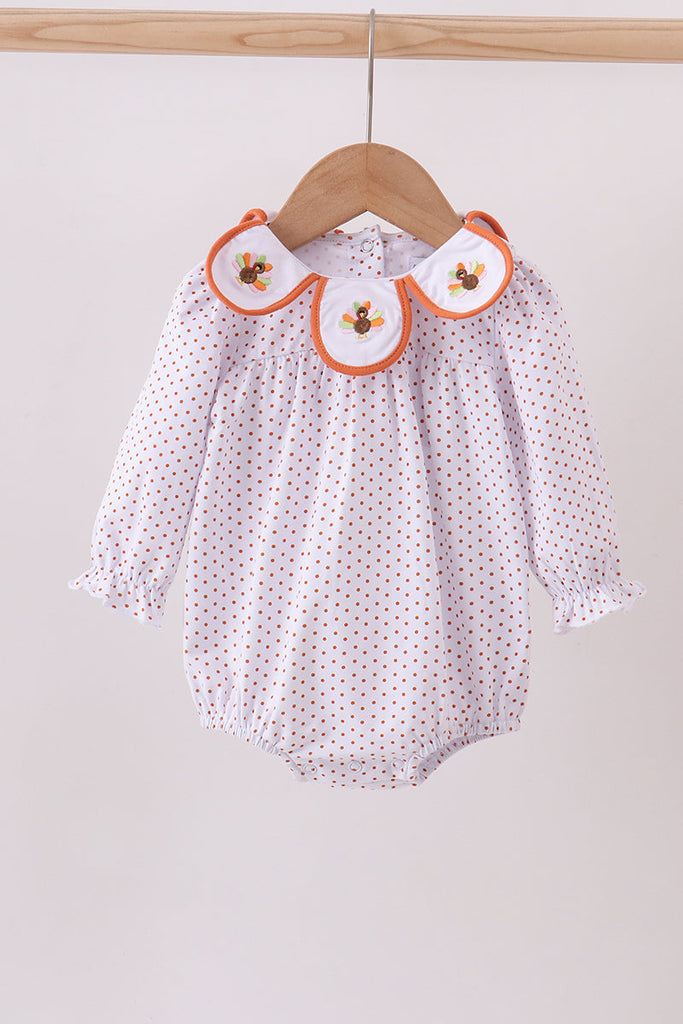Add a splash of fun to your look with this Premium Orange Turkey Embroidery Bubble. Its vibrant orange hue and detailed turkey embroidery bring playful charm to any outfit, making it perfect for festive occasions or casual days when you want to stand out. Lightweight and eye-catching, this bubble adds personality and a touch of whimsy wherever you go.